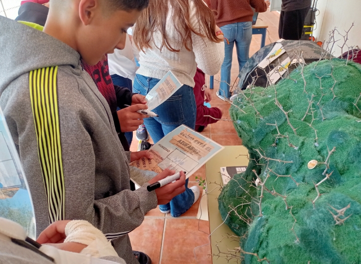 La semana del 24 al 26 de febrero se celebró la IV Semana Culturalq en el IES El Alquián en la que presentamos nuestro proyecto «Conociendo nuestro entorno» a unos 200 alumnos/as, profesores/as y padres/madres que visitaron nuestros talleres durante estos días. El alumnado de 4º de ESO y 1º Bachillerato que cursa la asignatura de Cultura Científica (unos 60 alumnos/as en total) ha preparado los talleres, mostrando la importancia de los ecosistemas de azufaifar cercanos a nuestro IES y analizando la problemática de su conservación, centrándonos en los residuos de plásticos y microplásticos. Esta actividad nos permite ensayar para nuestra próxima visita a la 23ºFeria de la Ciencia en Sevilla.